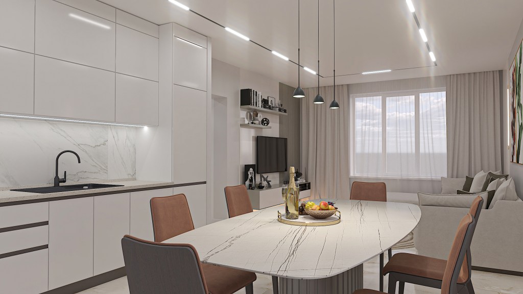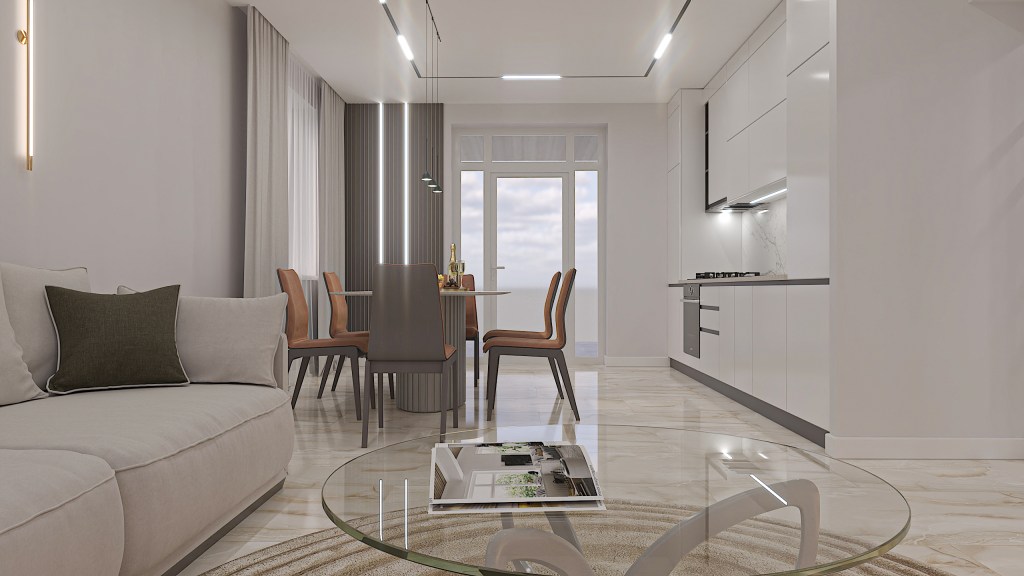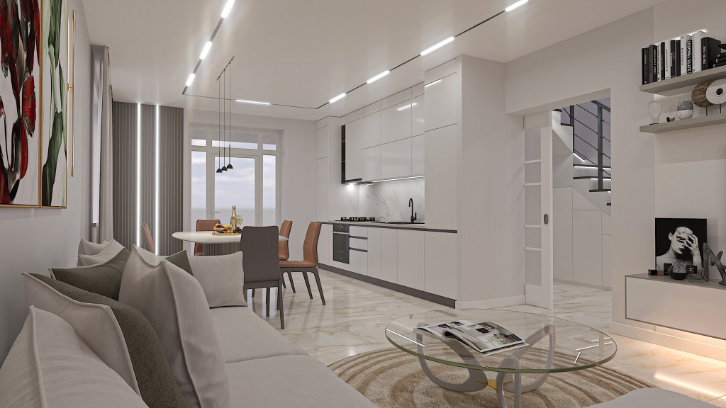 Living-room with kitchen: