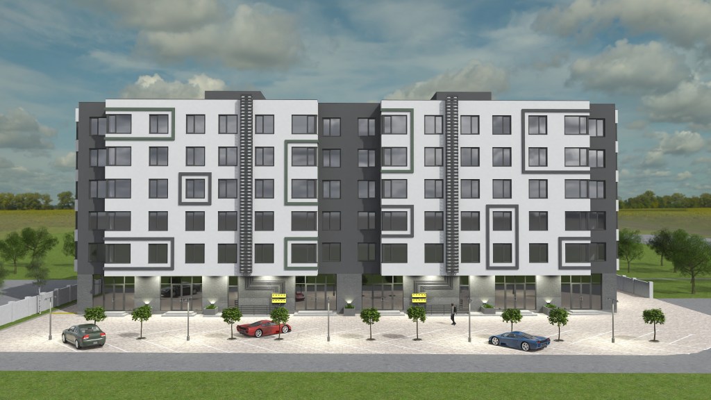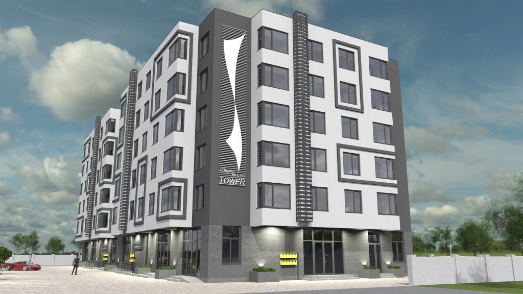 The city of Causeni should soon have a new apartment building, and it should look like so. The building has its commercial department (different stores) at the first floor, and in the basement. It is located in the Micro district of Causeni, as one can understand from the text that is on the building.